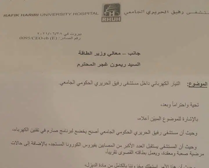 انقطعت التكييفات عن معظم خدمات الاستقبال في مستشفى رفيق الحريري الجامعي بسبب نقص السيولة اللازمة لشراء المازوت اللازم لتشغيل مولداتها.