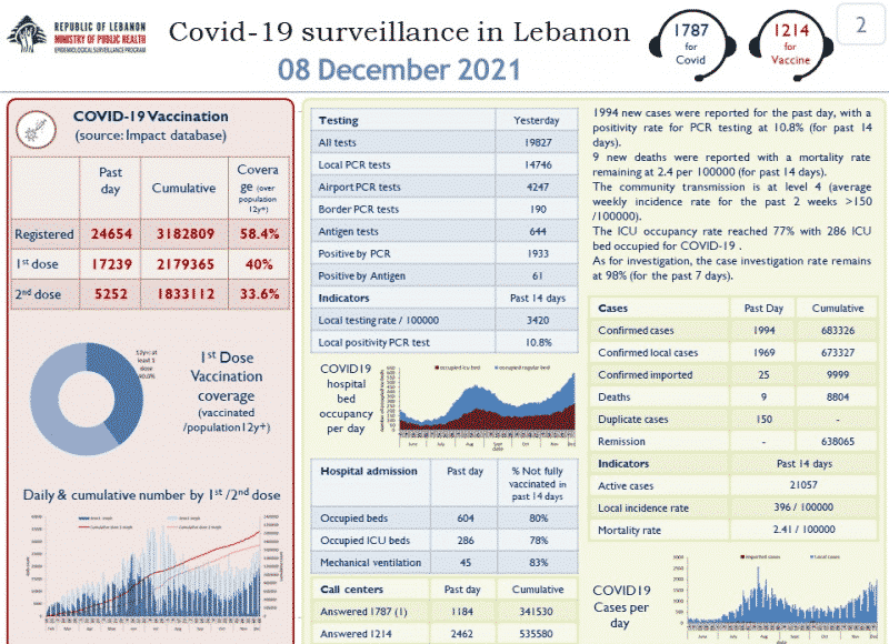 وأصيب 683326 شخصا في لبنان منذ ظهور الفيروس في شباط 2020.