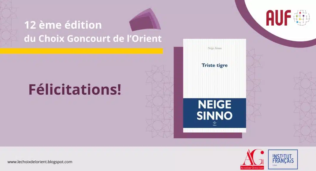 Le lauréat du Prix « Le Choix Goncourt de l’Orient » verra son roman traduit en arabe et les activités qui accompagnent la désignation du Prix se prolongeront tout au long de l’année 2024.
