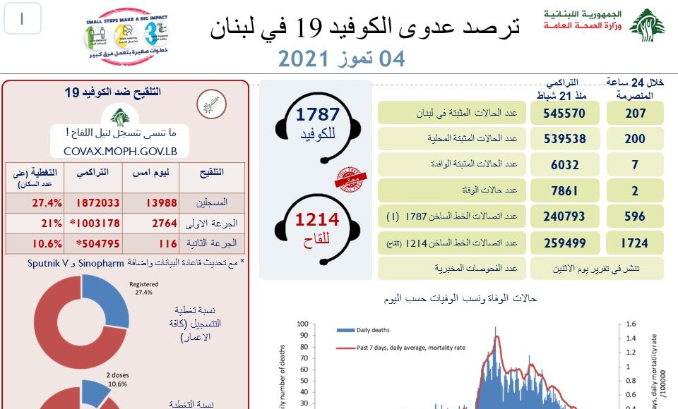 Lebanese authorities indicate that 2 people have died from complications induced by the COVID19 coronavirus in the past 24 hours. 207 people have also tested positive for the virus.