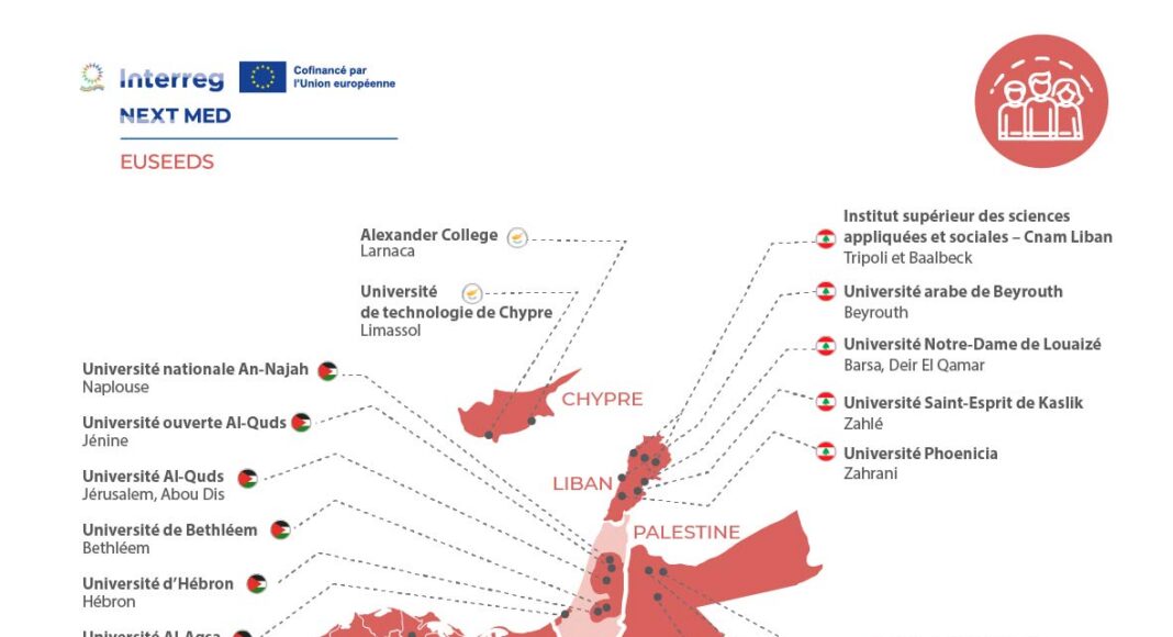 L’AUF Moyen-Orient est le chef de file du projet EUSEEDS, co-financé par l’Union Européenne dans le cadre du Programme Interreg NEXT MED, à hauteur de près de 2,5 M€, sur un total de près de 2,8 M€ (89%).