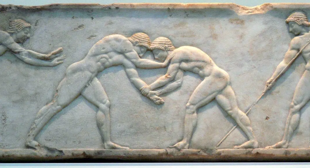 Combat de lutteurs en Grèce antique vers 510 av. J.-C.