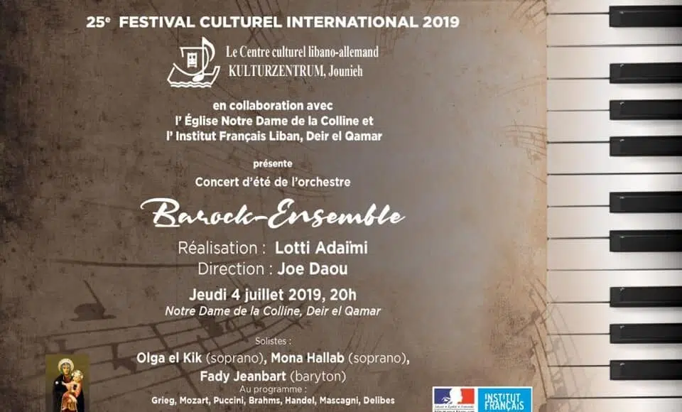 Le Barock-Ensemble qui s’est produit pour la première fois en 1984, se présente au 25e festival culturel international 2019. Cet ensemble libanais, formé par Lotti Adaïmi et sous la direction de Joe Daou, joue des compositions du baroque et du classique, mais s’efforce aussi à présenter des œuvres contemporaines.