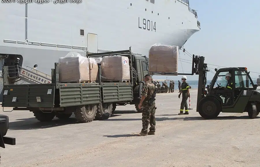 le navire français le PHA Le Tonnerre est arrivé aux port de Beyrouth, avec à son bord une cargaison d’aide humanitaire.