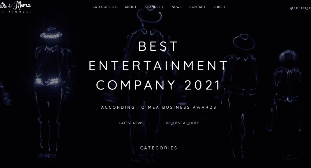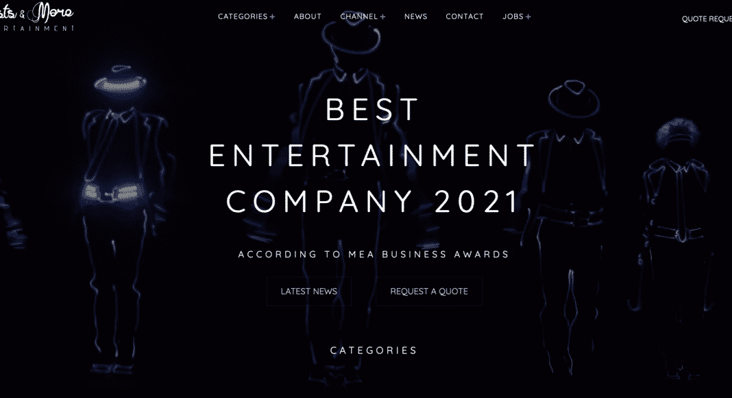 Artists and More est devenue la plus grande entreprise de production de spectacle et de divertissement du Moyen-Orient, ça leurs a apporté une nouvelle opportunité d’expansion dans la région. VOICI ARTISTSANDMORE.COM, le premier magasin de divertissement virtuel en ligne. Choisissez parmi des centaines de prestations, validez le panier puis préciser les détails de votre événement et demandez un devis pour recevoir une assistance immédiate des meilleurs producteurs et dirigeants vous garantissant une assistance et confirmation de réservation.