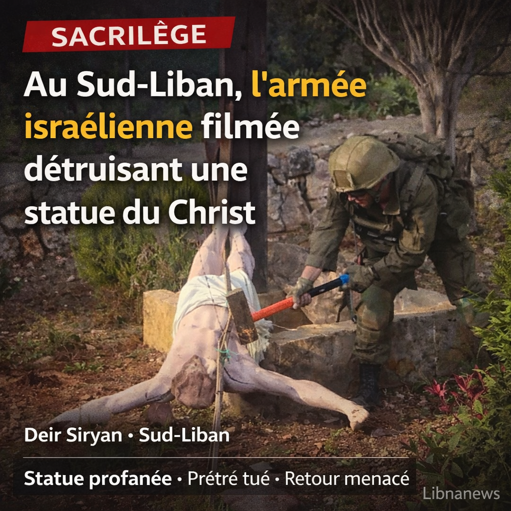 Au Sud-Liban, la vidéo a fait plus que scandaliser. Elle a confirmé, avec une brutalité presque clinique, ce que beaucoup de chrétiens de la frontière disent depuis des semaines : ils ne sont pas simplement pris dans une guerre, ils sont aussi exposés à une logique d’humiliation. On y voit un soldat israélien s’acharner à coups de masse contre une statue du Christ à Deir Siryan, près du Litani. Le geste est volontaire. Il ne relève ni d’un bombardement aveugle, ni d’un dommage collatéral, ni d’un échange de feu. Il relève d’autre chose : d’une profanation commise au grand jour, puis laissée à la circulation publique comme si l’image elle-même faisait partie de l’acte.