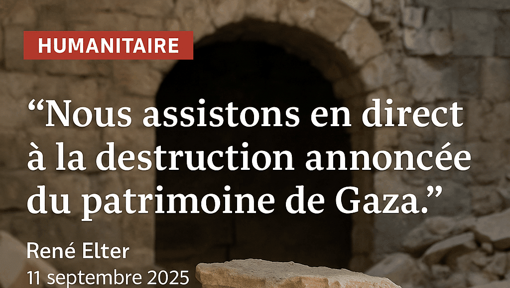 L’avertissement israélien cible des sites d’une valeur inestimable pour l’histoire et l’identité de Gaza. Parmi eux, un dépôt archéologique hébergé par l’École biblique et archéologique française, situé dans le quartier de Rimal, abrite plus de 180 mètres cubes d’artefacts représentant 25 années de recherches minutieuses. René Elter, archéologue associé à l’Institut français du Proche-Orient, a lancé un appel désespéré dans un courriel envoyé le 11 septembre à 20h41 CEST : « Nous assistons en direct à la destruction annoncée du patrimoine de Gaza, destruction annoncée ce matin par l’armée israélienne. Nous avons gagné quelques heures sur les 30 minutes qu’on nous avait données ce matin. » Il déplore la perte potentielle de milliers d’objets, fruits d’un travail de préservation menacé d’effacement en quelques heures, un délai qu’il juge insuffisant face à l’ampleur de la tâche dans les conditions actuelles de Gaza.