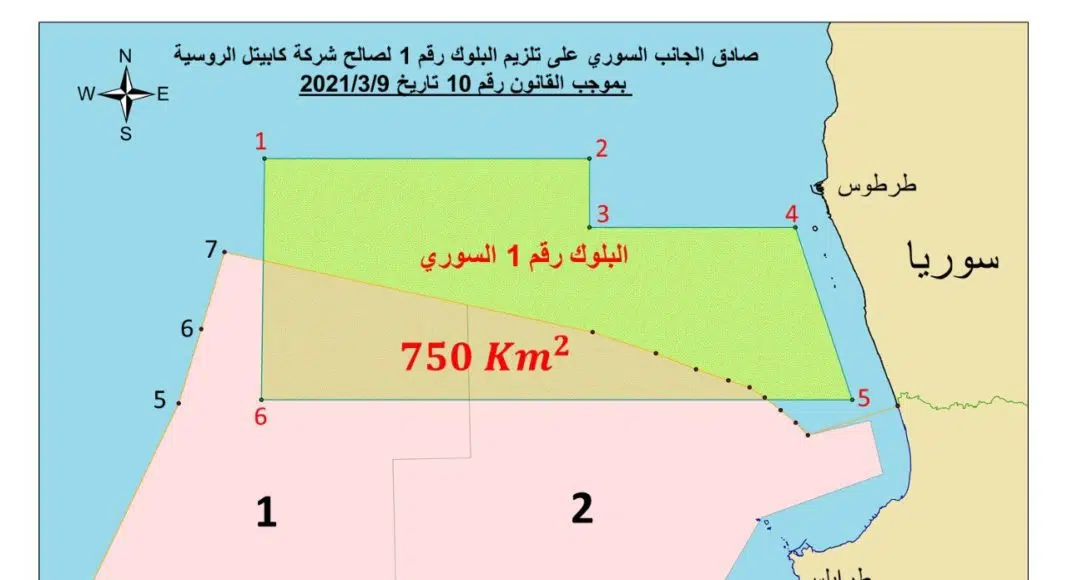 À l’origine, l’accord signé par les autorités syriennes avec une société russe « Capitale » permettant l’exploration du bloc 1 de leur zone maritime. Cependant, le bloc 1 syrien engloberait certaines parties des blocs 1 et 2 libanais sur une zone estimée de 750 km carrés avait indiqué Laury Haytayan.