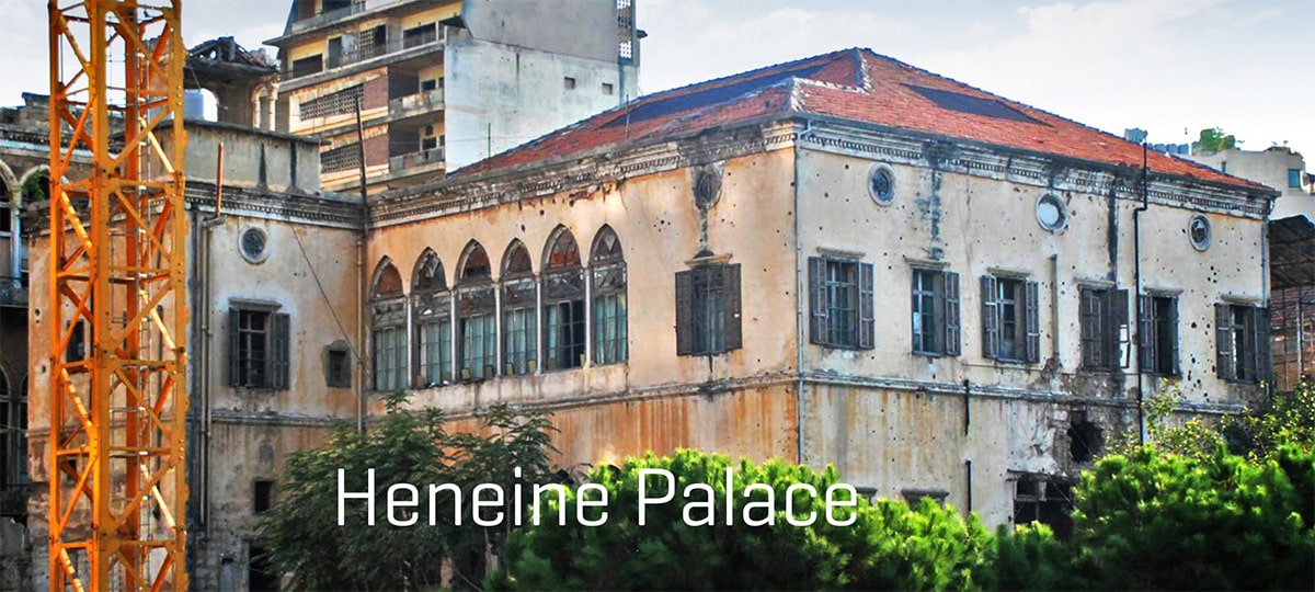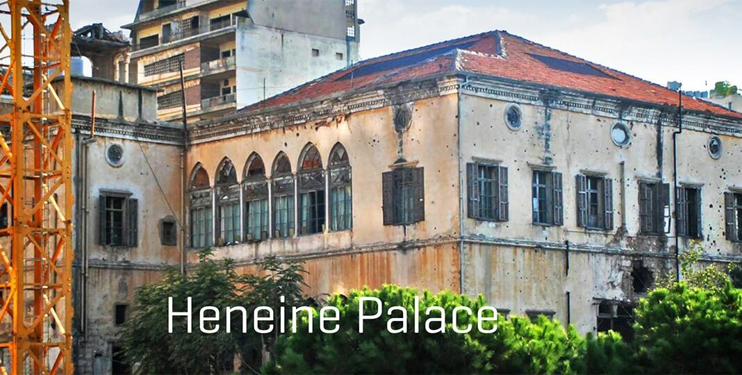 Bâti dans les années 1860, Heneine est aujourd’hui l’un des exemples les plus remarquables d’architecture de palais de la période Ottomane, subsistant encore aujourd’hui. Ses nombreuses pièces et grands halls de réception, vestibules, couloirs, escaliers et galeries à arcades, témoignent d’un style et d’une décoration incroyablement somptueuse et complexe. En tant que tel et jusqu’à la guerre civile, il fut un lieu de rencontre où se réunissait l’élite intellectuelle, artistique et politique de Beyrouth. Le Palais fut plus tard abandonné puis squatté et a récemment subi de sérieux dommages, mettant en danger son intégrité structurelle.