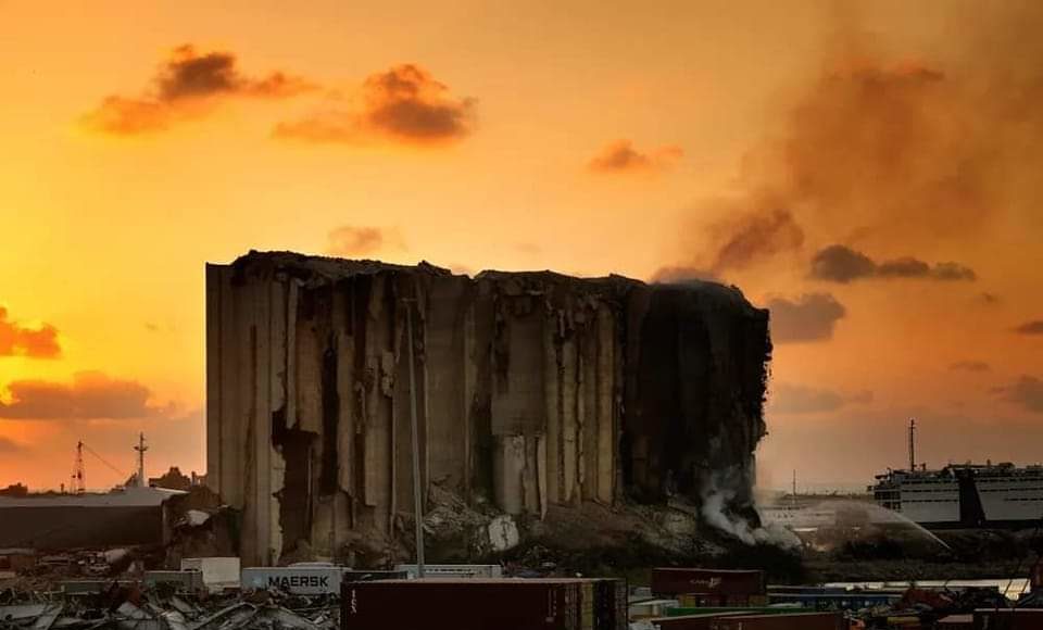 A quelques jours de la date commémorative de la double déflagration dévastatrice survenue, le 4 août 2020, au port de Beyrouth, les silos à grains endommagés s’effondrent ce dimanche 31 juillet 2022, suite à un incendie qui s’est déclaré deux semaines auparavant.