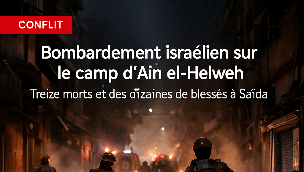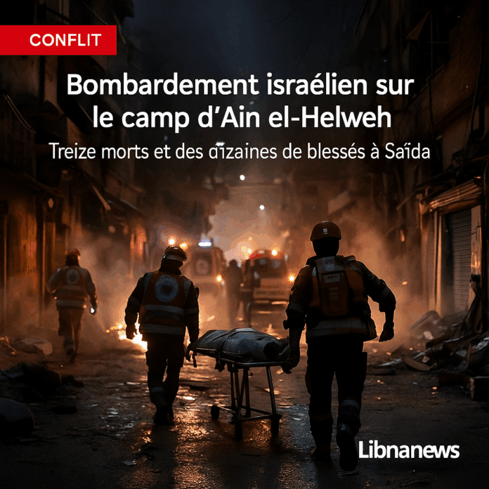 Le Liban a été frappé, dans la soirée du 18 novembre 2025, par un bombardement aérien israélien sur le camp de réfugiés palestiniens d’Ain el-Helweh, en périphérie de Saïda, au sud du pays. Selon le bilan officiel du ministère libanais de la Santé, cette frappe a causé la mort d’au moins treize personnes et blessé plusieurs dizaines d’autres, dont certains dans un état grave. L’attaque, menée par un drone, a visé une zone densément peuplée du camp, touchant des structures civiles et semant la terreur parmi les résidents. Les équipes de secours de la Croix-Rouge libanaise et de la Défense civile ont opéré toute la nuit pour dégager les victimes des ruines, tandis que les hôpitaux de Saïda ont lancé des appels pressants au don de sang face à l’afflux de blessés.