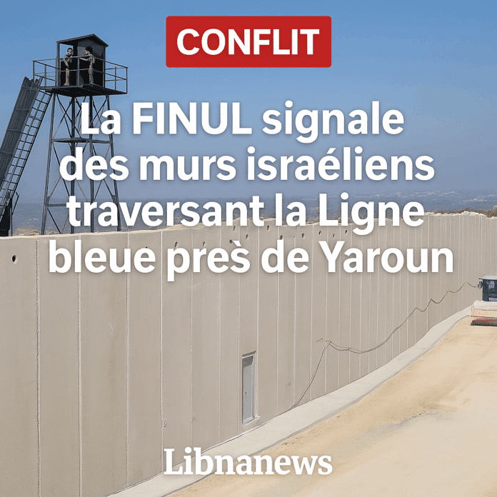 La FINUL confirme que des murs en béton construits par les FDI traversent la Ligne bleue près de Yaroun, rendant plus de 4 000 m² de terres libanaises inaccessibles. Ces structures constituent une violation de la résolution 1701 et s’ajoutent à une série d’incidents frontaliers qui fragilisent la stabilité régionale.