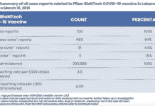 Les autorités libanaises indiquent que seulement 705 personnes indiquent avoir soufferts d'effets secondaires suite à l'injection du vaccin Pfizer BioNTeck au Liban selon une...