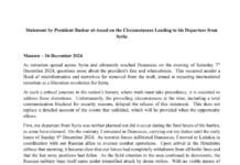 Depuis Moscou, Bachar el-Assad s’exprime pour la première fois après la chute de Damas le 7 décembre 2024. Il rejette toute accusation de fuite, affirmant avoir quitté la Syrie pour poursuivre la lutte contre le terrorisme en coordination avec ses alliés russes.