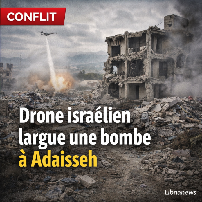 Un drone israélien a largué une bombe sonore sur Hay al-Masarib, au sud d’Adaisseh, dans une nouvelle série d’incidents à la frontière. Explosions, démolitions et raids à Yaroun, Tebnine et Wadi al-Asafir relancent les accusations de violations du cessez-le-feu et de la résolution 1701, sous surveillance de la FINUL.
