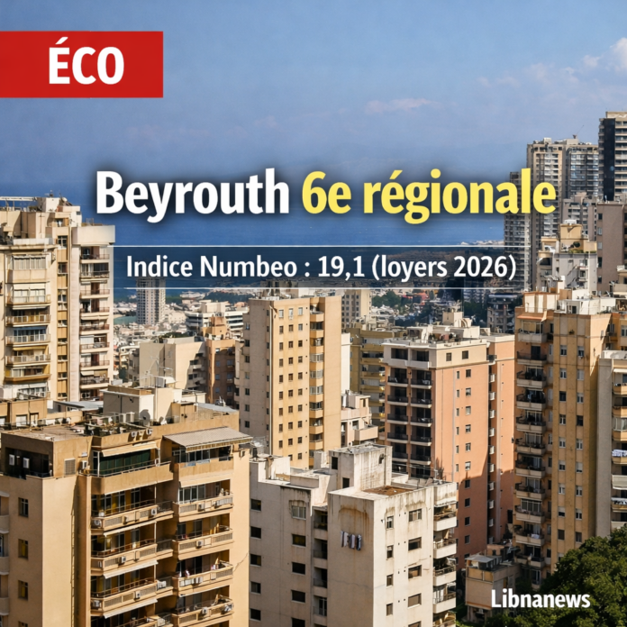 Numbeo classe Beyrouth 6e sur 13 au Moyen-Orient et Afrique du Nord pour les loyers 2026, avec un indice de 19,1 contre New York référence. La capitale libanaise reste loin du Golfe mais au-dessus de Tunis, Le Caire et Alger, un repère utile à relativiser face à des revenus compressés.