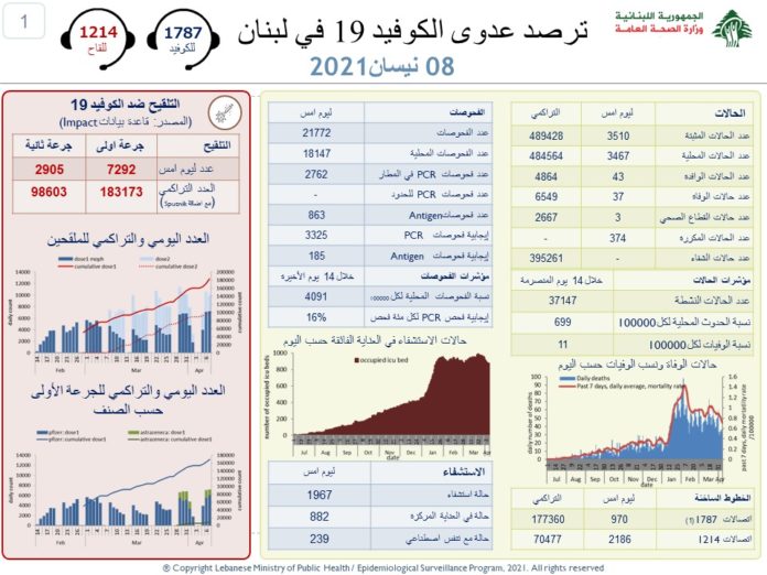 Liban/Coronavirus: 37 décès et 3510 cas ce jeudi 8 avril