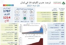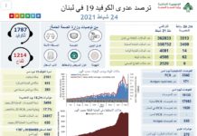 Le Liban déplore 62 nouveaux décès de personnes contaminées par le COVID19 et 3 513 nouveaux cas.