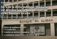 La dette publique libanaise est désormais détenue à 84 % par la Banque du...