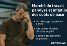 Le chômage des jeunes au Liban atteint 43 %, poussant des milliers de diplômés à l’émigration. L’économie est paralysée par la hausse des coûts de production et des matières premières, touchant particulièrement les secteurs industriel et agricole. L’inflation des biens de base fragilise les ménages, tandis que l’absence de régulation efficace empêche toute stabilisation. Le marché du travail s’effondre, aggravant l’exode des compétences et la fracture sociale.