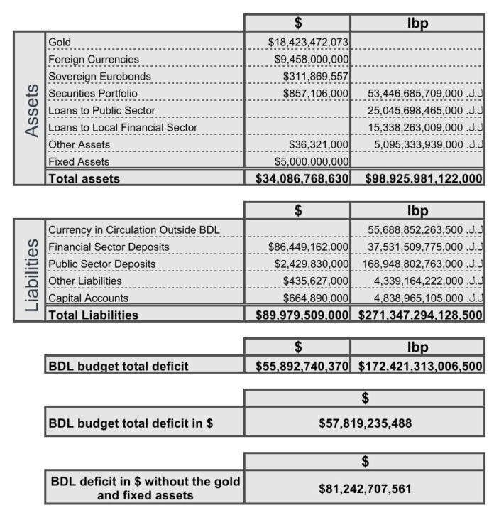 Le bilan de la Banque du Liban montre que la banque centrale libanaise a un endettement important prenant en compte un changement de parité...