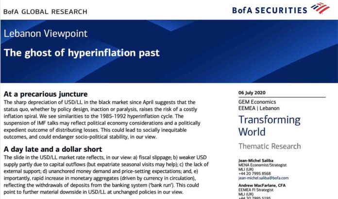 Liban: le Rapport de Bank of America et les fantômes hyper inflationnistes du passé