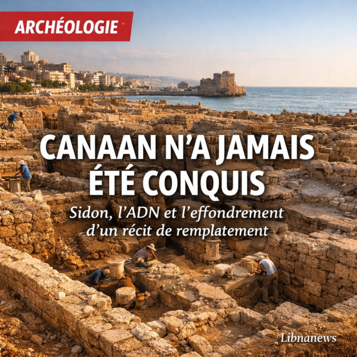 À Sidon, les fouilles et l’ADN bousculent le récit d’une conquête biblique effaçant les Cananéens. Les strates archéologiques montrent une continuité culturelle entre âge du Bronze et âge du Fer. Une étude génétique révèle une forte ascendance cananéenne chez les Libanais actuels, rendant intenable l’idée d’un remplacement total sur Canaan.