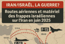 Le 12 juin 2025, Israël lance l’opération « Rising Lion », visant des sites nucléaires iraniens via la route Syrie-Irak, la plus probable. Des F-35I furtifs, F-15I et F-16I, soutenus par des Boeing 707 tankers, survolent le Liban (Tyr, Bekaa). Des frappes préliminaires neutralisent les radars syriens. Malgré des risques russes et milices pro-iraniennes, cette trajectoire minimise les ravitaillements. Les bombes GBU-28 et missiles Jericho III ciblent Natanz et Fordo. (Mots-clés : frappes israéliennes, Iran, Syrie, F-35I, Rising Lion)