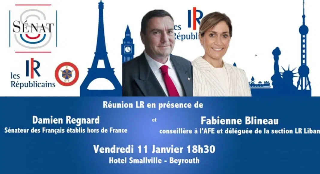 Les Républicains du Liban vous informent d’une rencontre-débat avec Monsieur Damien Regnard, Sénateur des Français résidant hors de France et Madame Fabienne Blineau, conseillère consulaire et déléguée de la section LR Liban vendredi 11 janvier à 18H30 à l’Hôtel The Smallville à Beyrouth.