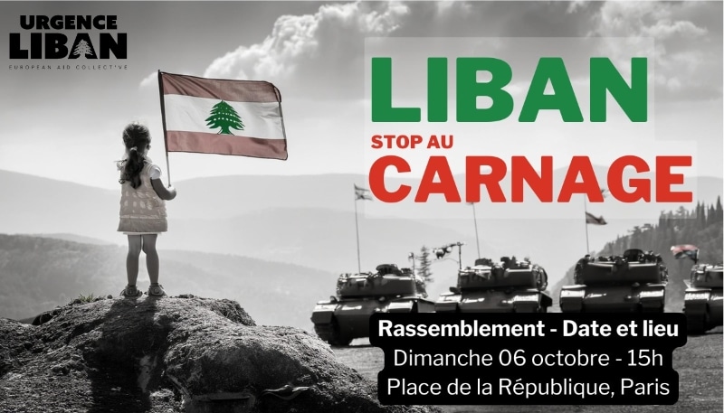 Ce dimanche 6 octobre, nous nous retrouvons à nouveau unis Place de la République, pour dénoncer l’agression meurtrière qui se perpétue contre le Liban et toute sa population .
