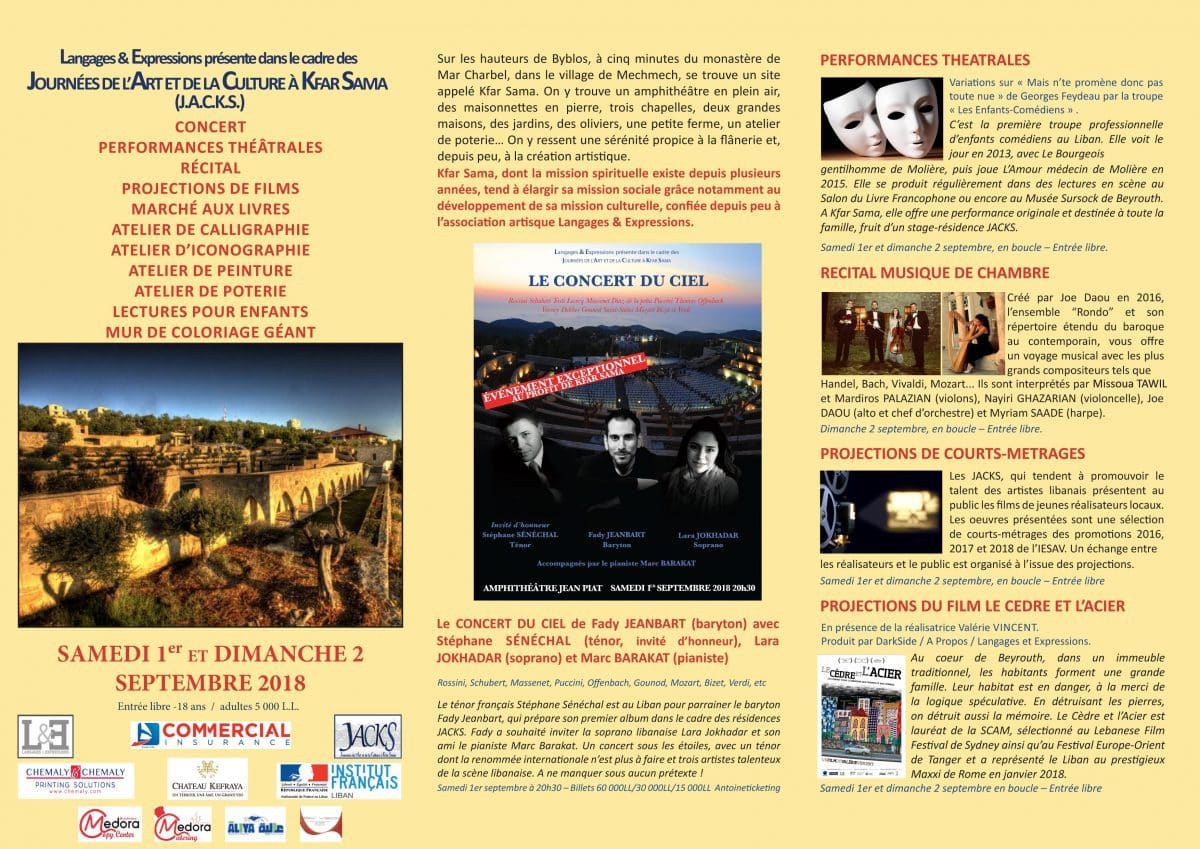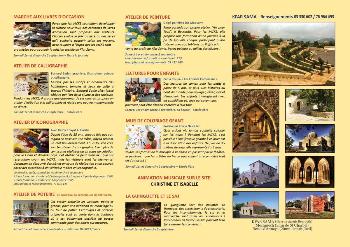 Une idée de sortie ce weekend ? Envie d’un cocktail explosif d’art et de culture dans un cadre idyllique et traditionnel ? Rendez-vous à Kfarsama, à quelques minutes du monastère de Mar Charbel-Annaya, avec un évènement inédit : « Journées de l’Art et de la Culture à Kfar Sama (JACKS) ».