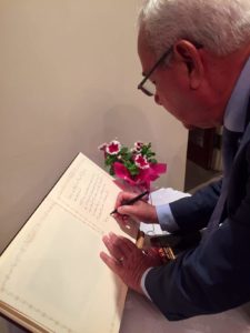 « Merci à Antoine Maalouf, pour son accueil amical, visite très instructive et admirative de l’hôpital français du Levant, qui fait l’honneur à la tradition médicale en conciliant la technicité et l’humanité Avec mon amical souvenir. » Jean Leonetti