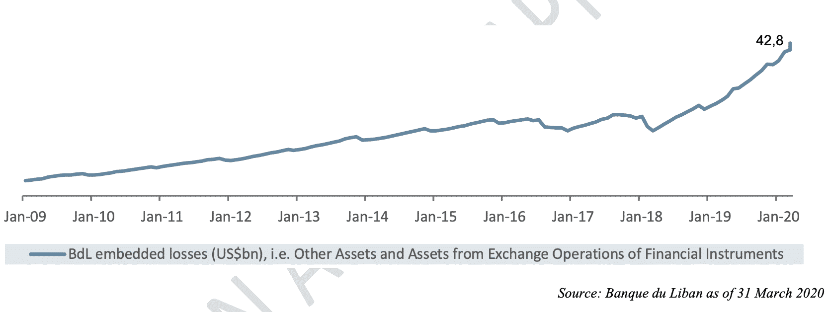 Et pour cause, les pertes de la Banque du Liban sont colossales, à hauteur aujourd’hui de 42.8 milliards de dollars selon le document rendu public, principalement en raison des opérations d’ingénierie financière – fortement critiquées d’ailleurs dans les différentes missions du FMI et menées entre 2016 et 2018 – qui ont bénéficié aux banques libanaises et à leurs actionnaires via la distribution de dividendes importants au lieu d’être réinvestis et financer des secteurs productifs.