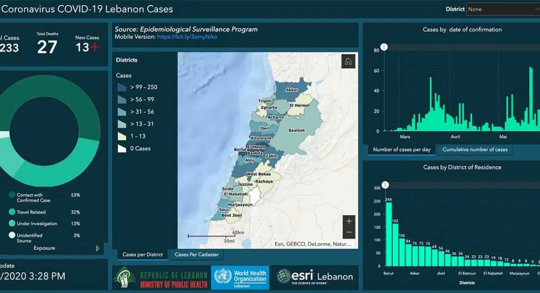 Le dernier bilan fait état de 1233 personnes contaminées depuis un premier cas diagnostiqué le 21 février 2020, en hausse de 13 cas depuis hier, avec 7 cas domestiques et 6 cas de libanais ou de résidents rapatriés au Liban. 74 personnes demeurent actuellement hospitalisées et 715 personnes en sont guéries. On déplore malheureusement 27 décès, dont un hier.