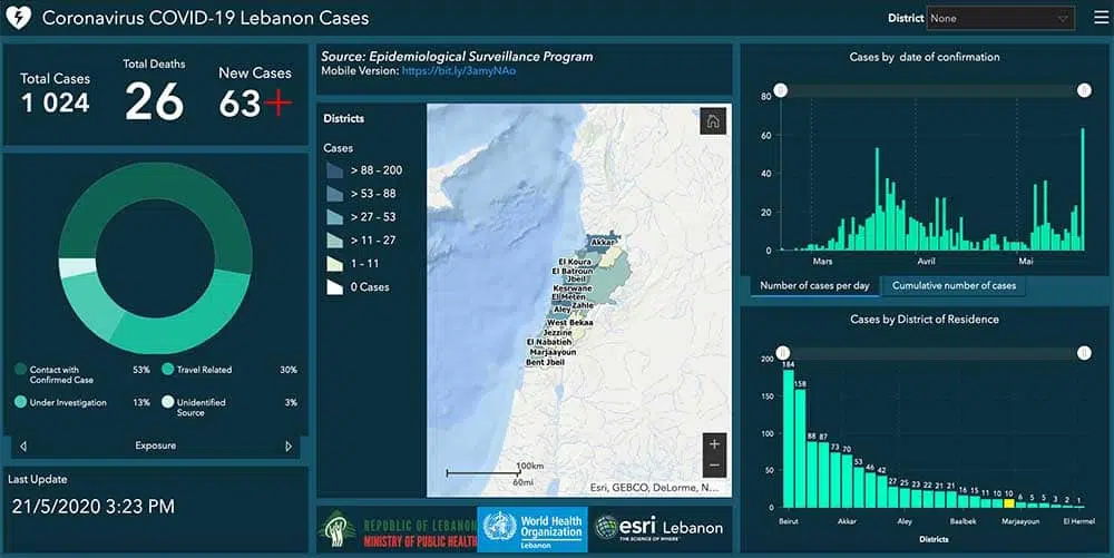 Le Liban a franchi la barre des 1000 cas avec 1024 cas diagnostiqués depuis l’apparition du virus au Pays des Cèdres. 36 cas seraient d’origine domestique et 27 cas de l’étranger. 663 personnes seraient également guéries et on déplore 26 décès.