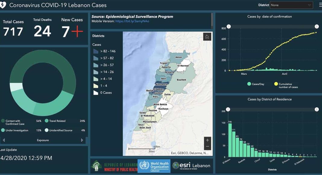 Le Ministère de la Santé a indiqué que 717 cas de personnes infectées par le coronavirus sont désormais comptabilisés au Liban, soit 7 cas supplémentaires par rapport à hier. Pour l’heure, on dénombre également 145 guérisons et toujours 24 décès.