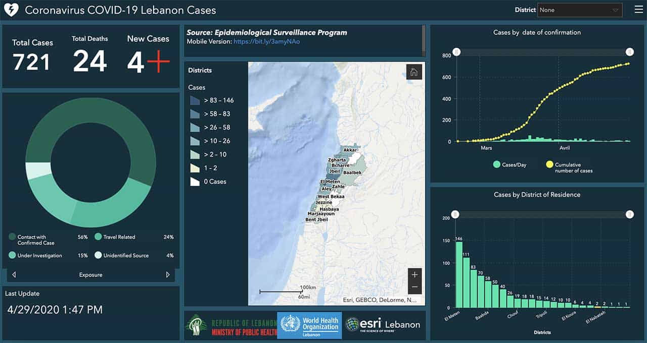 Le Ministère de la santé a annoncé la découverte de 4 nouveaux cas de personnes infectées par le coronavirus COVID-19 au Liban, portant à 721, le nombre de personnes contaminées. 145 personnes en seraient guéries et on déplore toujours 24 morts.