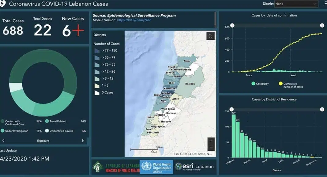 Quelle est la répartition des cas sur un plan géographique au Liban, par rapport à hier?