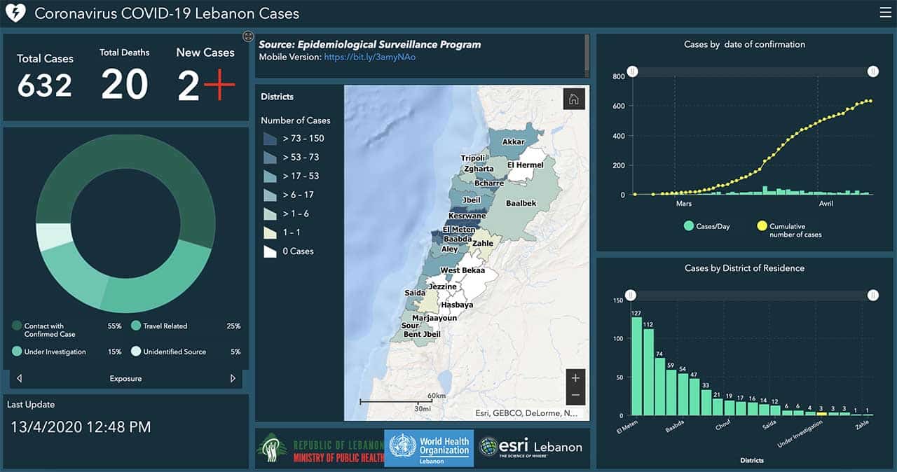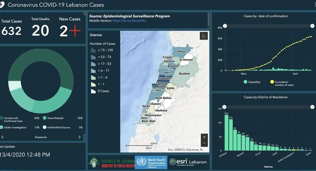 Cette augmentation relative pourrait indiquer que la pandémie ralentie au Liban en raison des mesures de confinement décidées par les autorités depuis le 15 mars dernier. Cependant, il s’agirait également de poursuivre l’application de ces mesures afin de le confirmer.