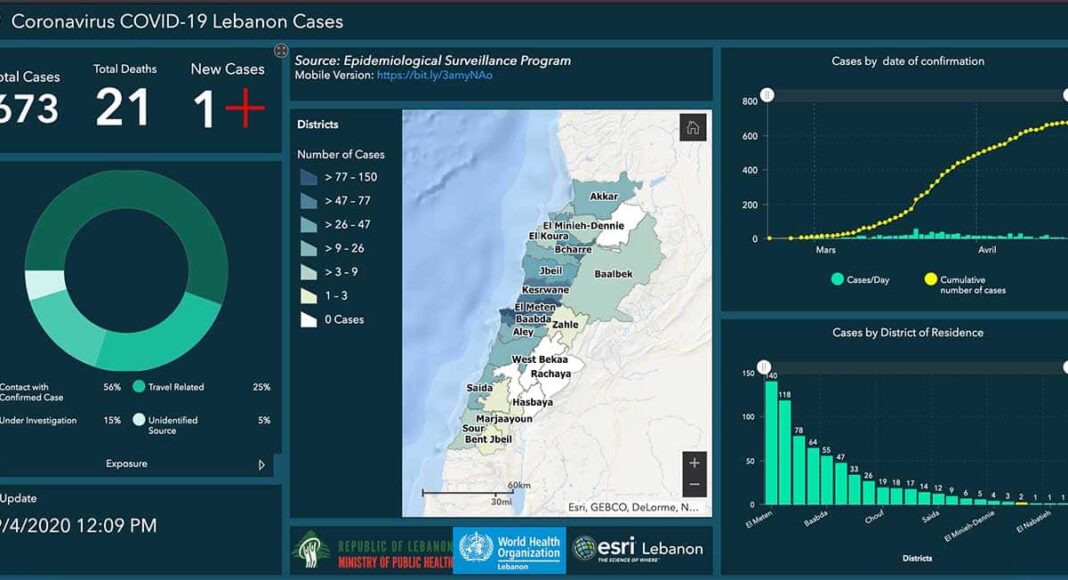 Quelle est la répartition des cas sur un plan géographique au Liban, par rapport à hier?