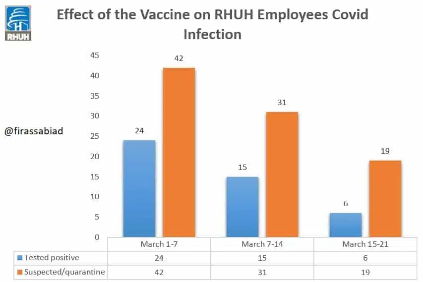 Le directeur de l’Hôpital universitaire Rafic Hariri note une diminution du nombre de contamination au sein de son établissement dont le personnel serait actuellement en voie d’être vacciné.