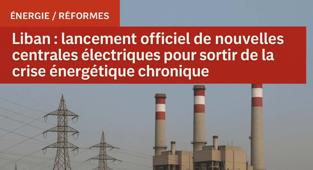 Le gouvernement libanais a validé le lancement de deux nouvelles centrales électriques alimentées au gaz naturel, chacune d’une capacité de 800 mégawatts. Le coût total du projet est estimé à 1,6 milliard USD, soit environ 5 % du PIB national de 2025. L’annonce s’inscrit dans le cadre du programme de réformes du Ministère de l’Énergie et de l’Eau (MoEW), appuyé par la Banque mondiale.