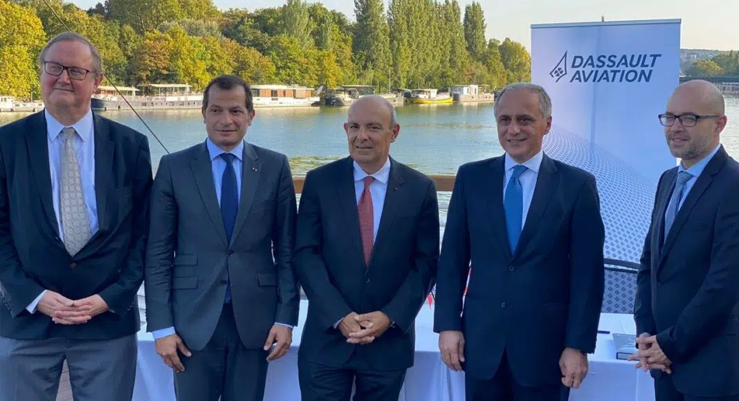 La convention a été signée ce jour, au quartier général de Dassault Aviation à Saint-Cloud, par M. Fouad Abou Nader, président de Nawraj, et Eric Trappier, président-directeur général de Dassault Aviation. Son Excellence M. Rami Adwan, ambassadeur du Liban à Paris, M. Pierre Duquesne, ambassadeur-délégué interministériel à la Méditerranée, et M. Gwendal Rouillard, député du Morbihan, co-président du Groupe d’études sur les chrétiens d’Orient et les minorités, ont honoré cette cérémonie de leur présence.© Dassault Aviation – C. CosmaoM. Fouad Abou Nader (à gauche) et M. Eric Trappier (à droite).