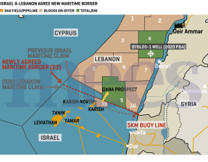 Ainsi, le Point 1 actuellement adopté par le Liban a été défini par l’ancien Premier ministre Fouad Siniora en 2007 et a depuis été confirmé par les présidents successifs : Michel Sleiman,( Carte de la ligne 23 envoyée à l’ ONU) , Michel Aoun ( Signe un accord sur la base de la ligne 23 avec Israel), Joseph Aoun, ainsi que par le président de la Chambre, Nabih Berri. Ce point officiel ne se situe plus exactement sur la ligne verte, mais légèrement décalé, ce qui a des conséquences directes sur l’espace maritime libanais, notamment vis-à-vis des zones contestées avec Israël, ainsi que les droits maritimes par rapport à Chypre et la Syrie. Car :