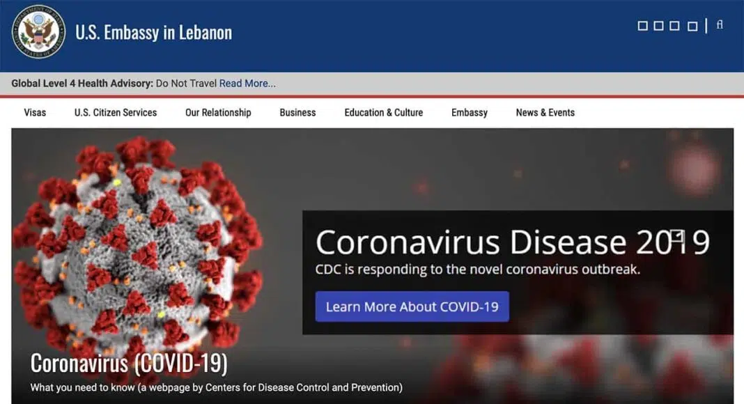 L’ambassade des Etats-Unis au Liban a annoncé avoir évacué tout le personnel non essentiel en raison de l’épidémie de coronavirus COVID-19 qui sévit actuellement dans le Monde.