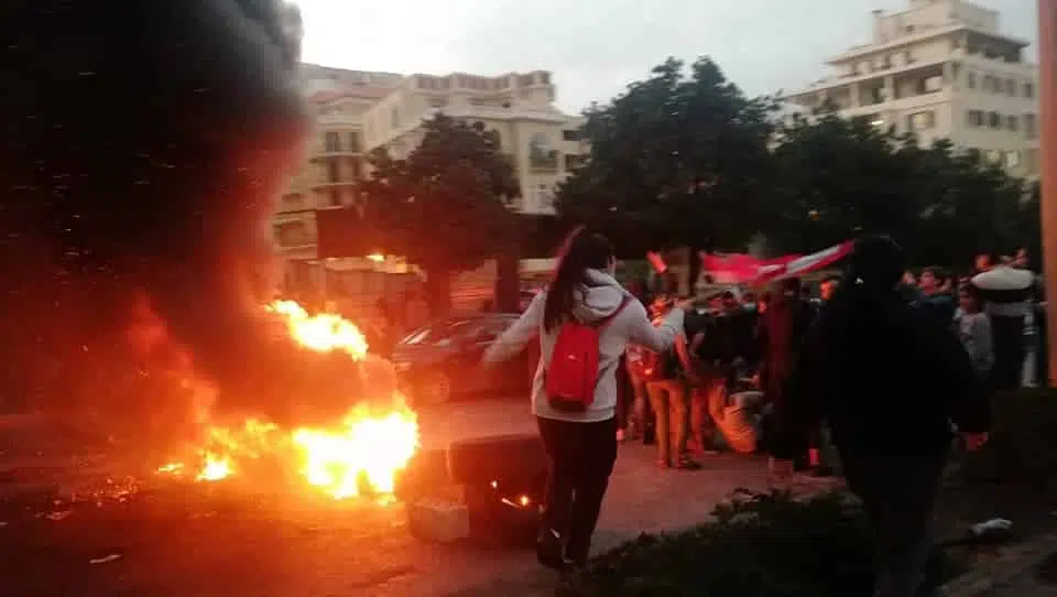 La circulation routière est interrompue au niveau du Ring Fouad Chéhab, Burg el Ghazal, avec des pneus en feu.