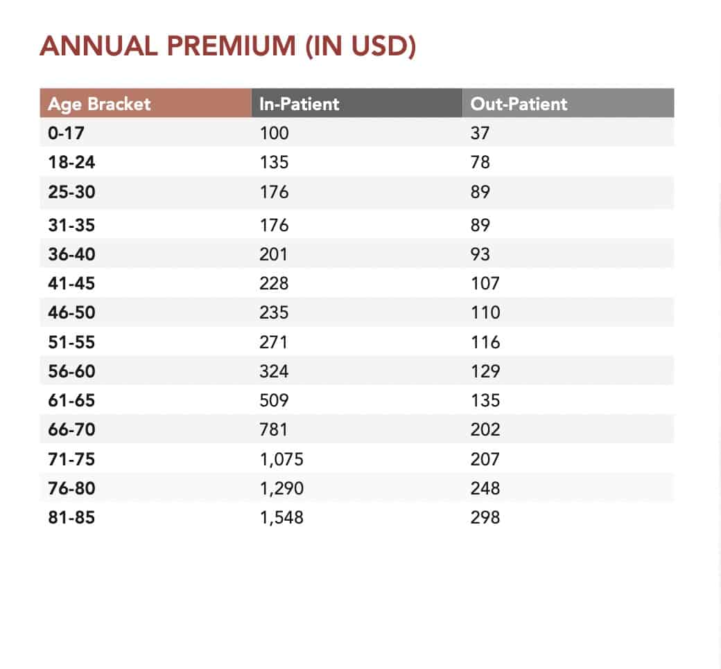 Pour un jeune jusqu’à 17 ans, il faudra compter 100 $ par an (auxquels s’ajoutent éventuellement 37 $ en ambulatoire) ; un adulte de 50 ans paiera 235 $ (et 110 $ en ambulatoire) ; quant à une personne de 85 ans, il lui en coûtera 1548 $ (et 298 $ en ambulatoire).