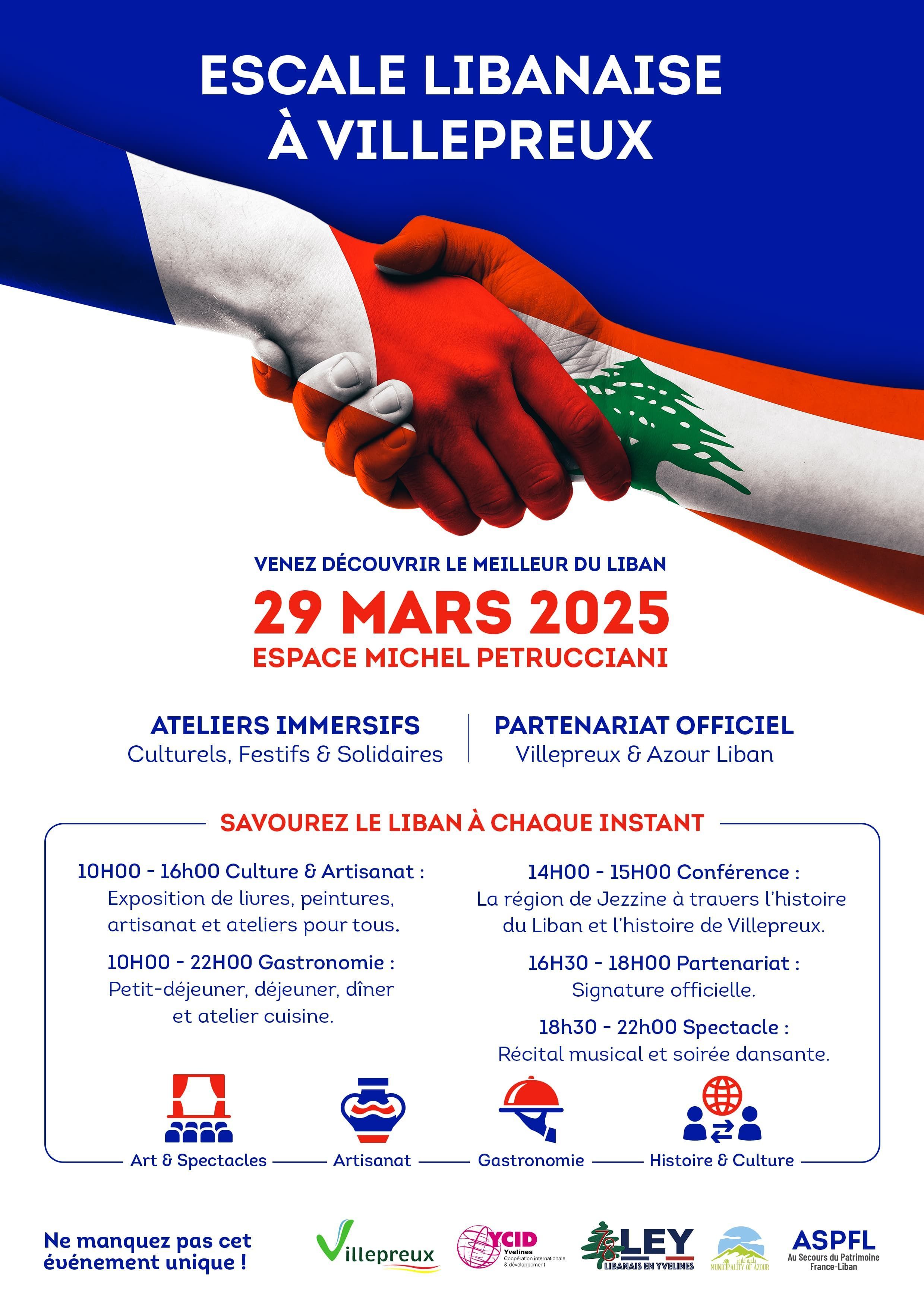 Venez nombreux célébrer cette « Escale libanaise » qui durera une journée à Villepreux, rythmée par des moments de fraternité et de convivialité !