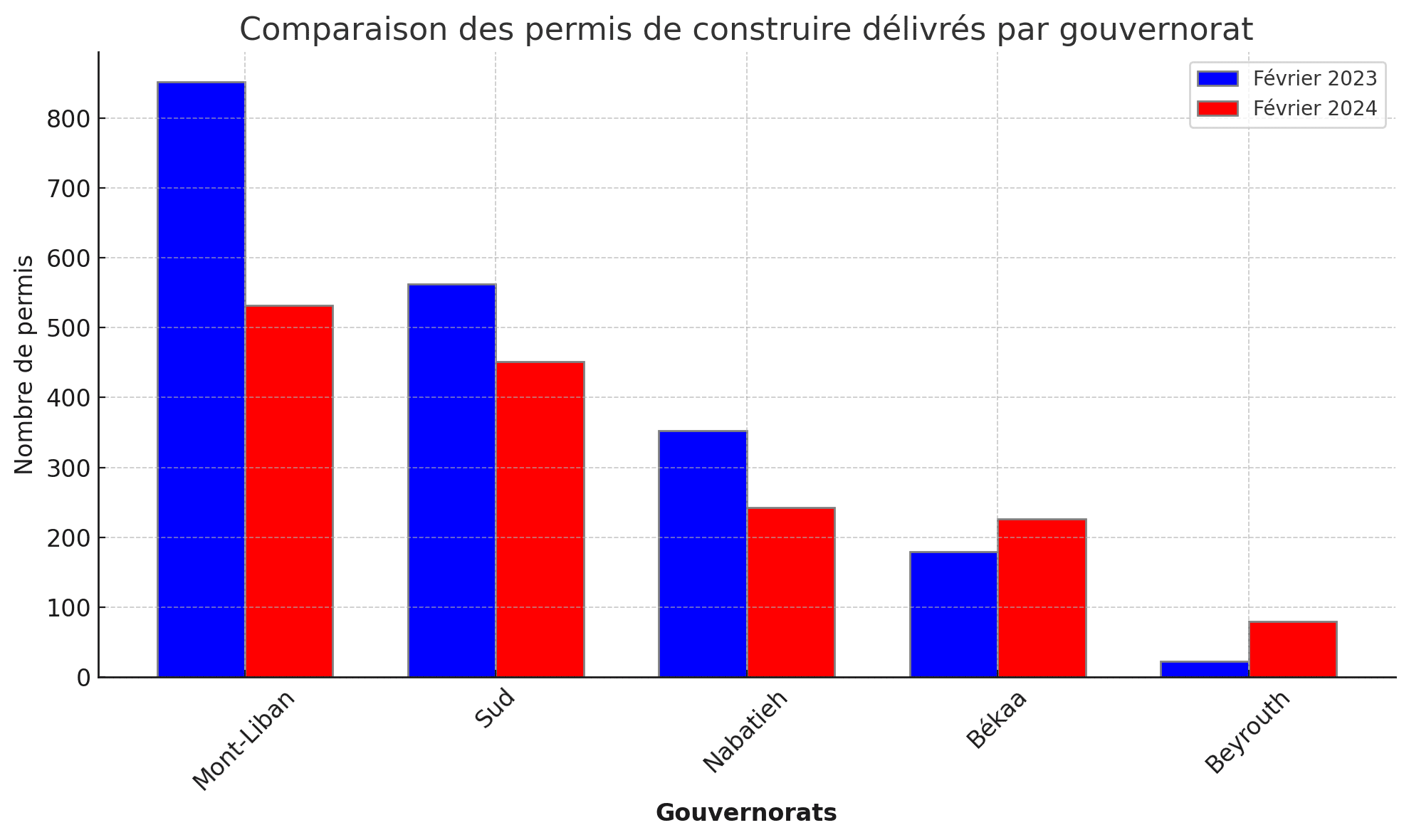 - Mont-Liban : 33,5 % du total des permis (532 permis en 2024 contre 852 en 2023)