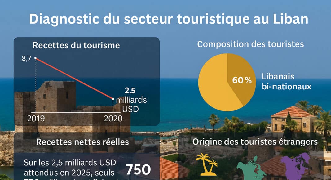 En 2025, le Liban ambitionne de générer 2,5 milliards de dollars grâce au tourisme, une projection qui traduit un espoir de relance après des années de crises économiques, politiques et régionales. Ce chiffre, supérieur aux 2,35 milliards de dollars de 2020, année marquée par la pandémie et l’explosion du port de Beyrouth, reste bien en deçà des 8,7 milliards de 2019, selon la Banque du Liban. Cependant, le tourisme libanais repose sur une base fragile : une majorité de visiteurs sont des Libanais bi-nationaux, comptabilisés comme touristes internationaux en raison de leurs passeports étrangers, ou des résidents locaux relevant du tourisme intérieur. Jusqu’en 2019, la surévaluation de la livre libanaise transformait le tourisme en un secteur coûteux, drainant les réserves monétaires via des importations massives et des subventions implicites. Aujourd’hui, le modèle touristique, centré sur une clientèle arabe et de luxe, manque de diversification et néglige le potentiel d’un tourisme de masse. Comme le dit l’adage, « les petits torrents font les grandes rivières » : une industrie touristique plus inclusive, attirant des nationalités variées, pourrait transformer l’économie. Avec un PIB réduit de moitié depuis 2018 et une pauvreté touchant 80 % de la population, selon la Banque mondiale, il s’agit ici d’analyser les perspectives du tourisme en 2025, ses limites, et propose des solutions pour une économie résiliente, intégrant la technologie, l’agriculture et un tourisme diversifié.